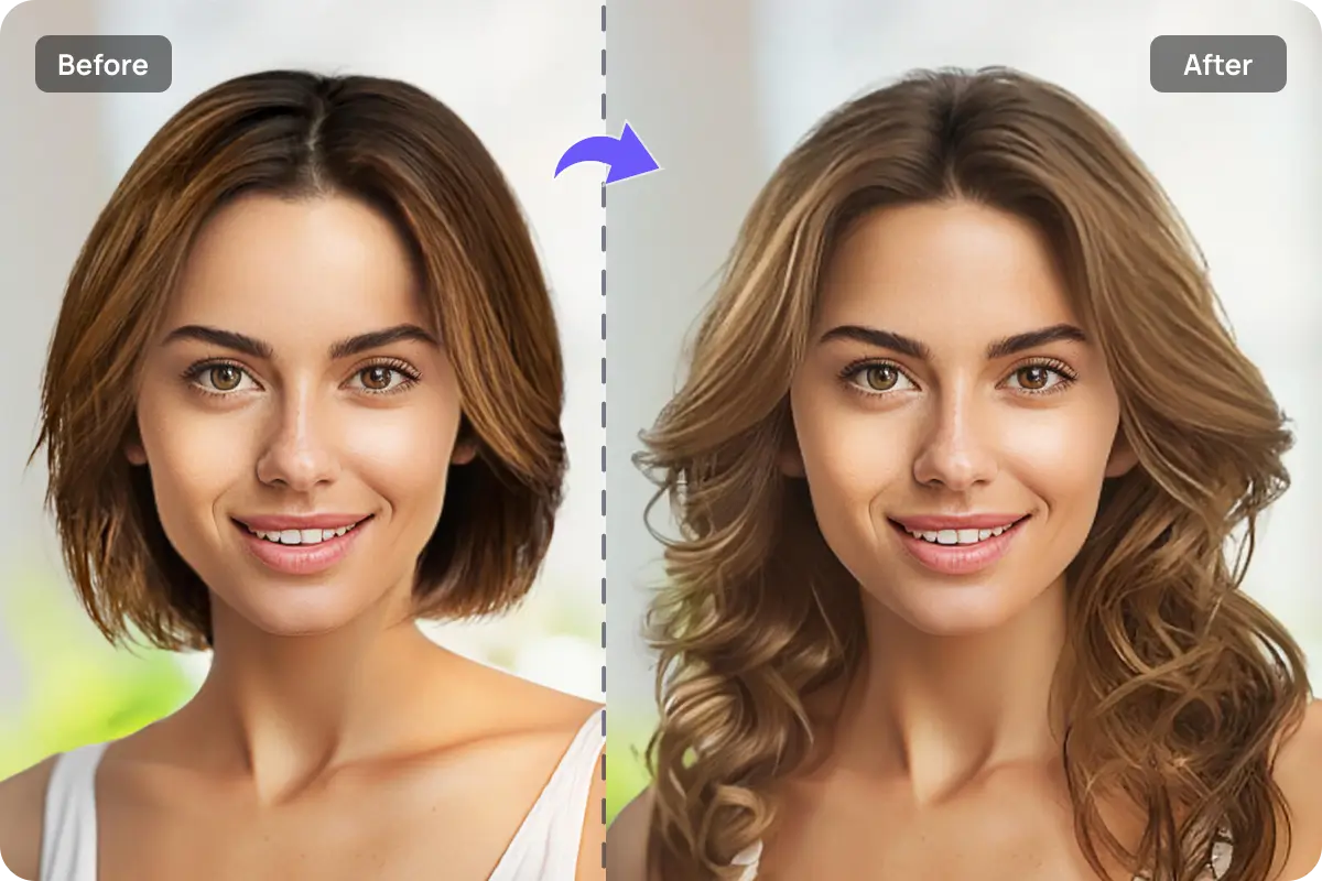 Você pode experimentar desde mudanças sutis, como reflexos e luzes, até transformações radicais como rosa choque, azul sereia ou prateado. A IA adapta a cor ao seu tom de pele, mostrando se ficará harmônico ou destoante.